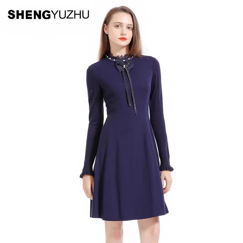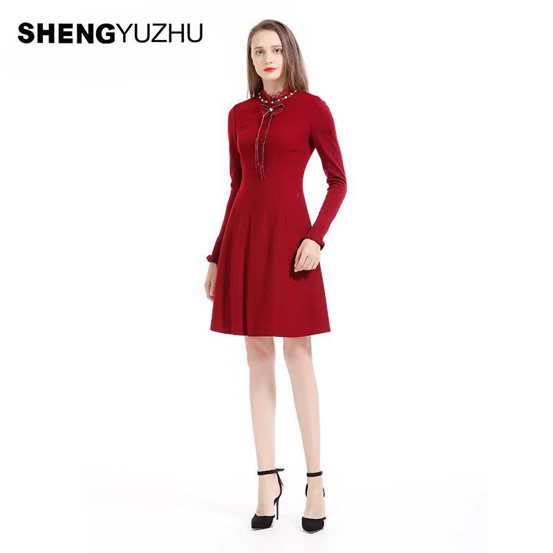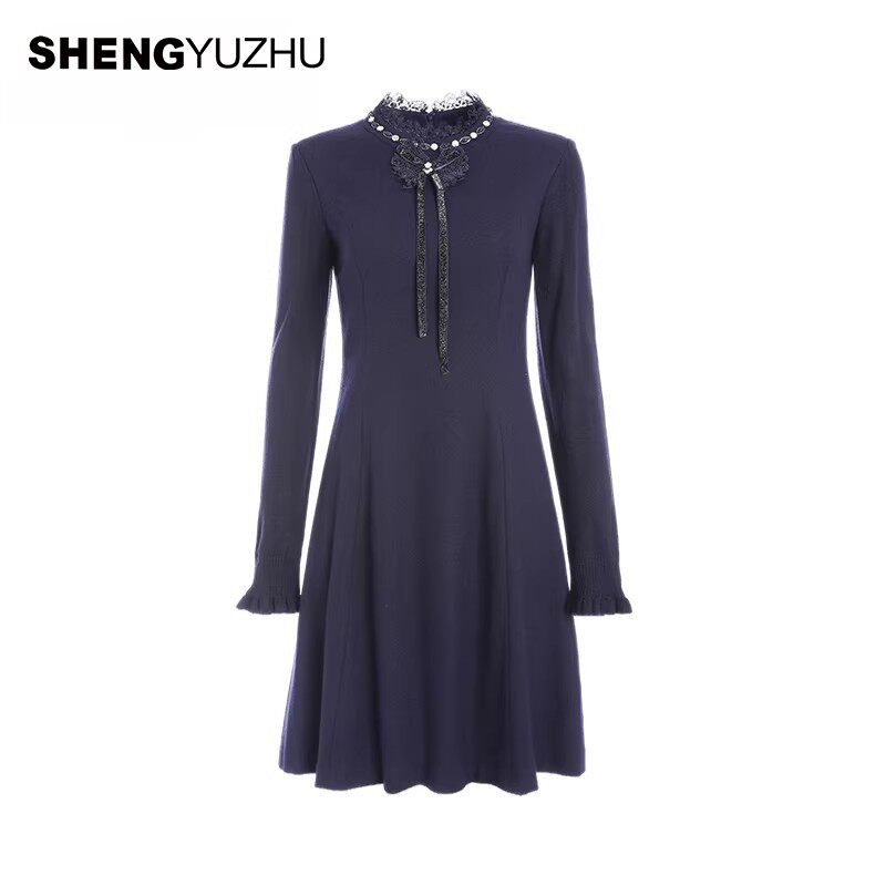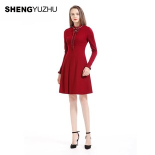 声雨竹官方旗舰店春夏新款 套头圆领A字裙 纯色连衣裙女士气质长袖