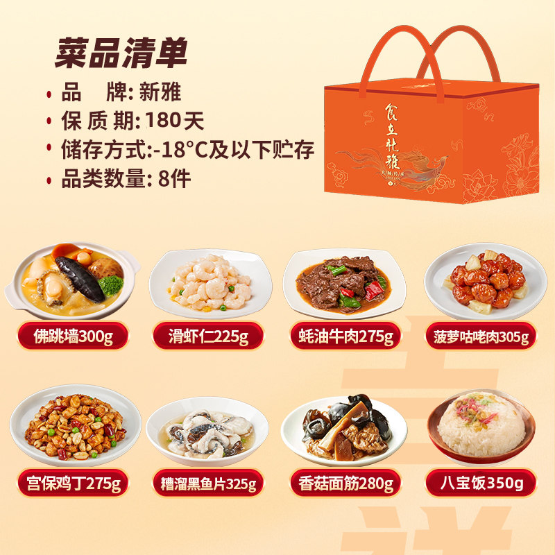新雅8道佛跳墙家宴半成品菜礼盒送礼速食牛肉虾仁高端餐厅预制菜