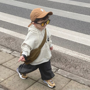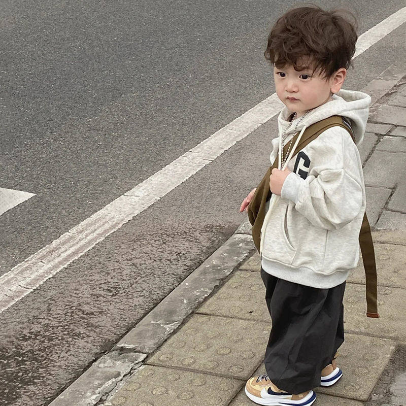 小叽咕2023新儿童春季 洋气上衣男女童潮3 字母休闲卫衣连帽时尚