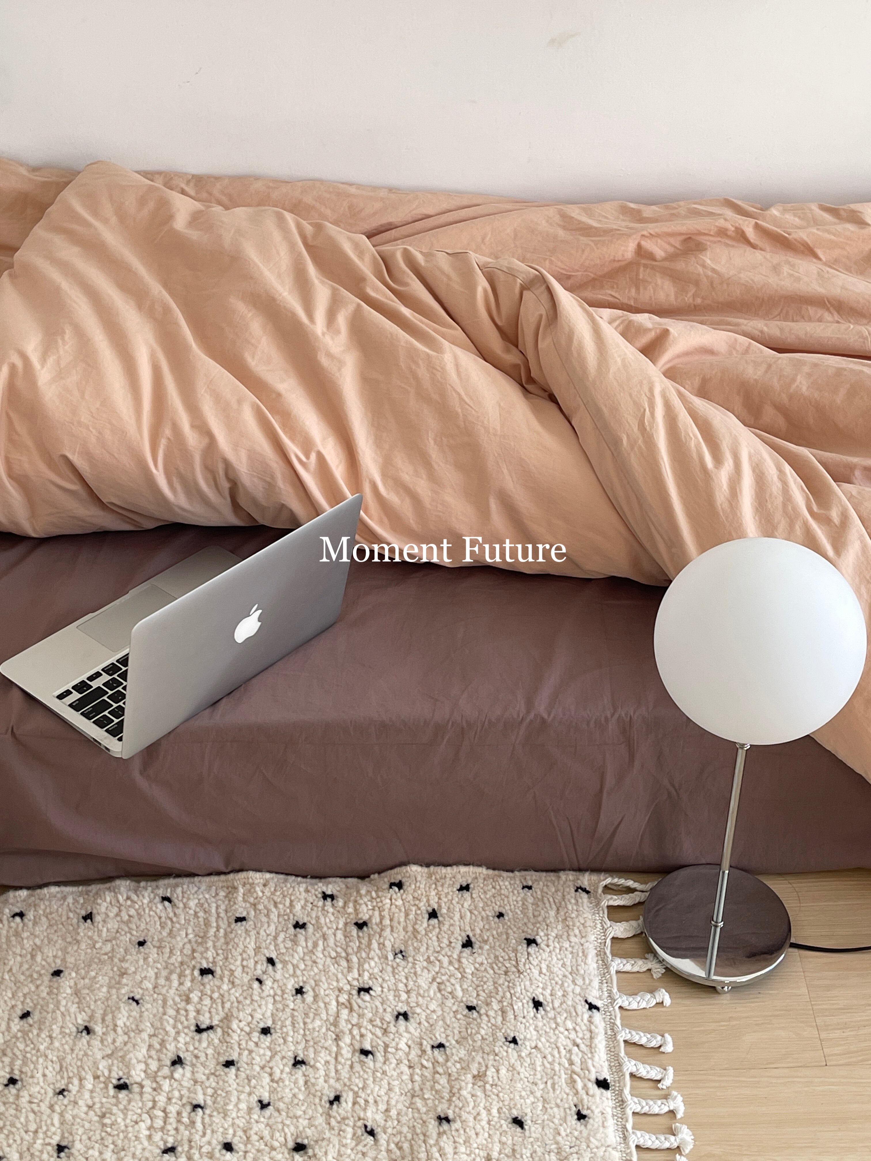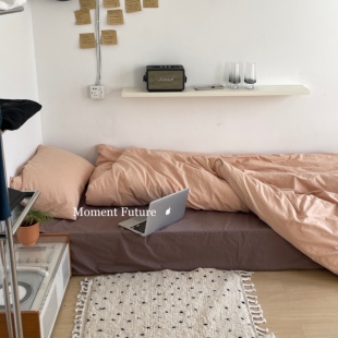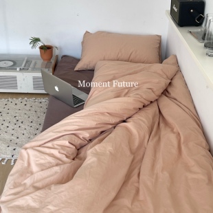 Moment 韩系粉咖拼色水洗棉纯色四件套无印风床上用品 Future日式