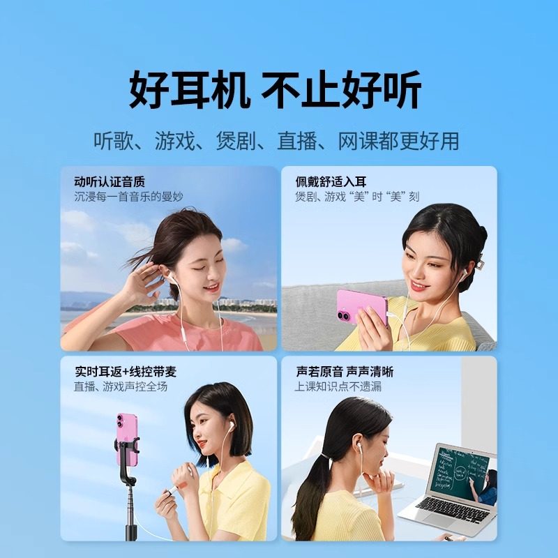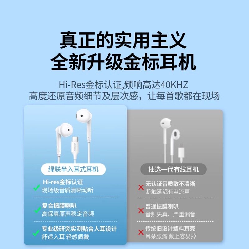 绿联耳机有线typec接口3.5mm适用华为vivo小米苹果ipad电脑圆头孔