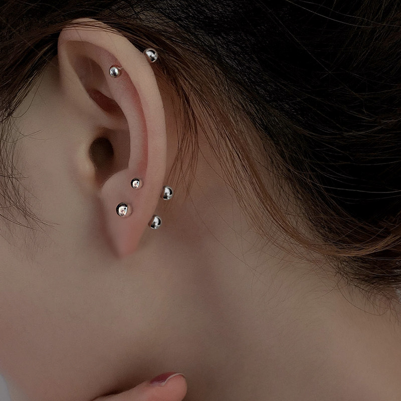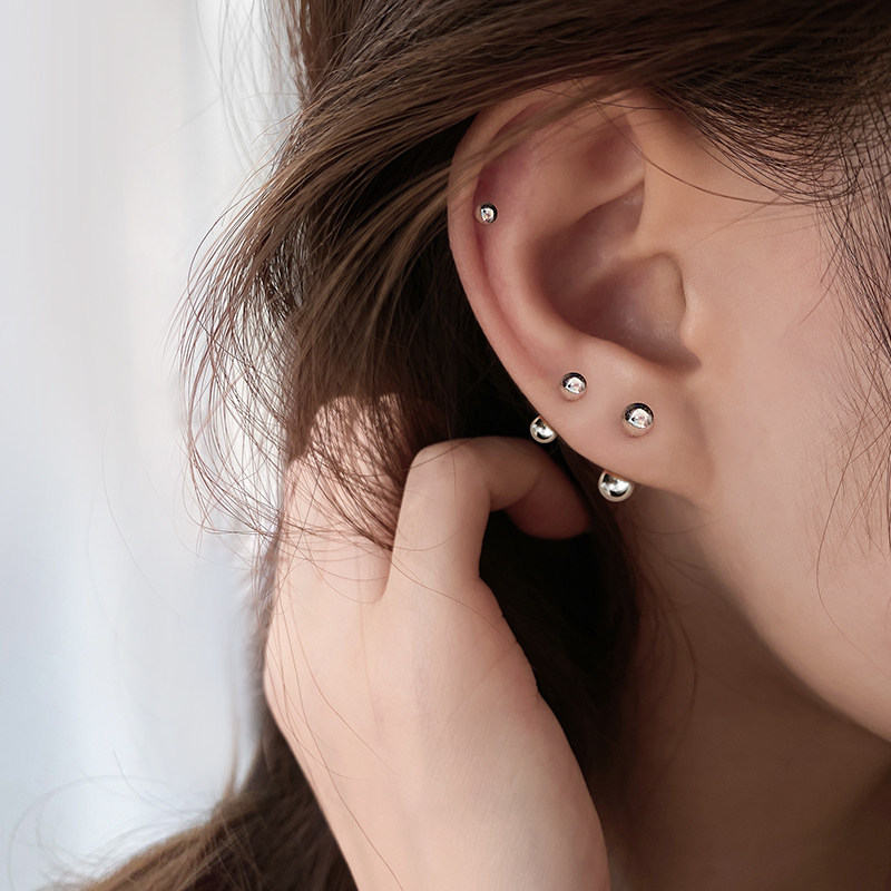 S999纯银耳环耳圈耳骨钉养耳洞耳骨环高级感素圈耳扣耳钉女耳饰男