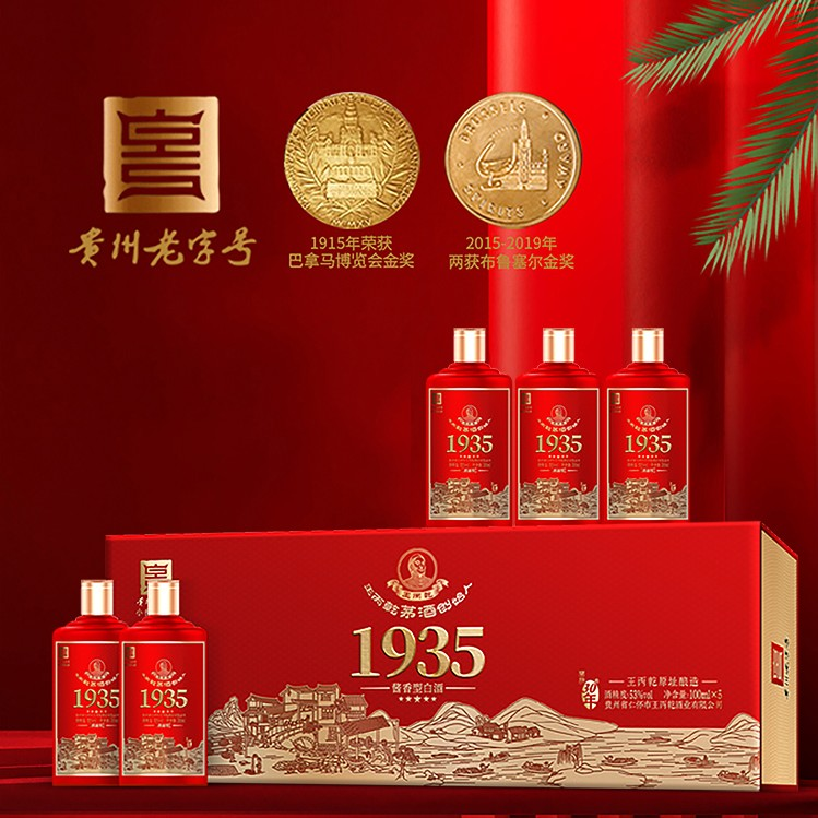 开放30年 5瓶礼盒装 纯粮酒 53度酱香型白酒100ml 王丙乾1935品鉴版