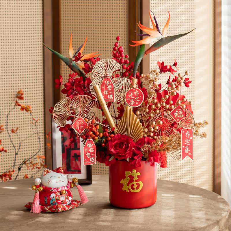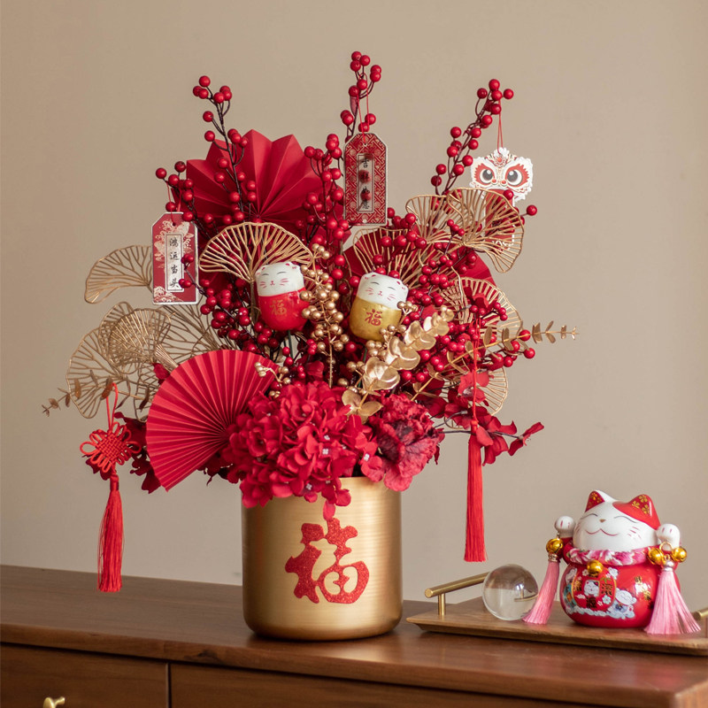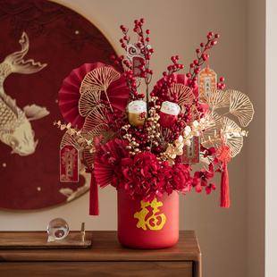 福桶摆件年宵花客厅桌面装 饰结婚新房布置轻奢高档乔迁新居礼品