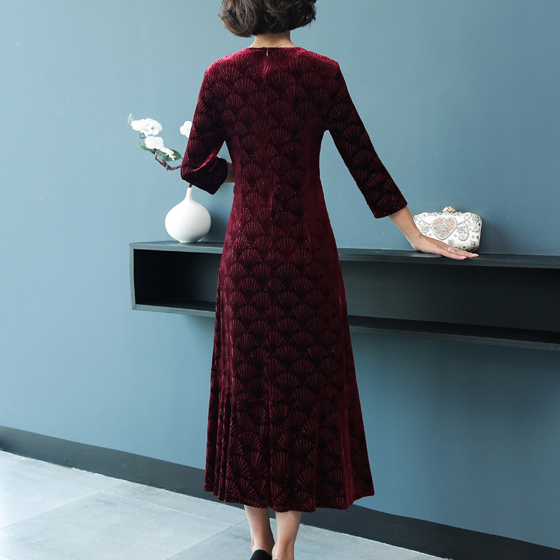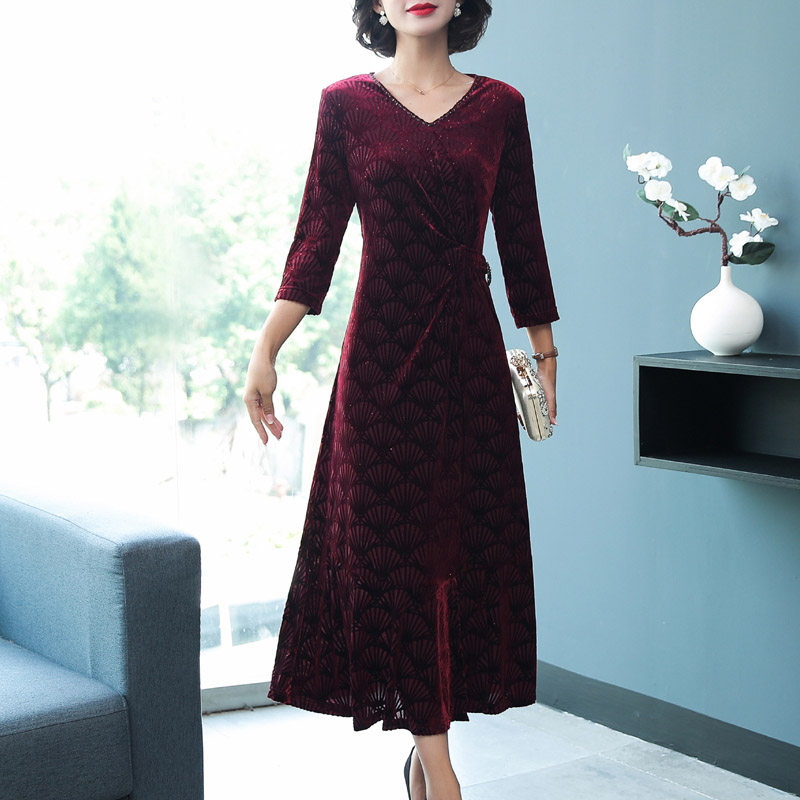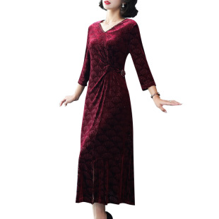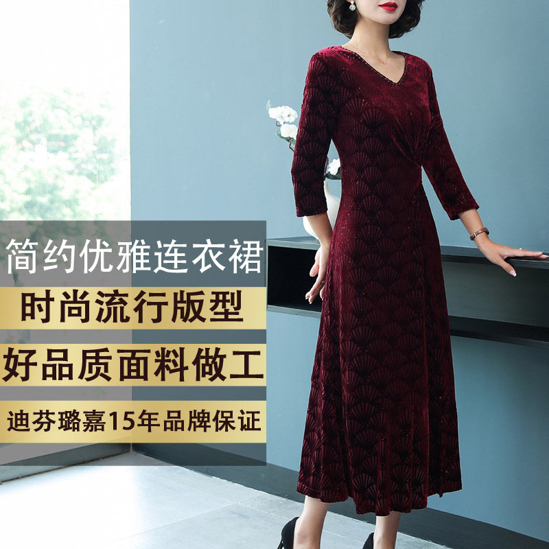 气质金丝绒年轻妈妈连衣裙女2021秋季 喜婆婆婚宴礼服高贵显瘦 新款