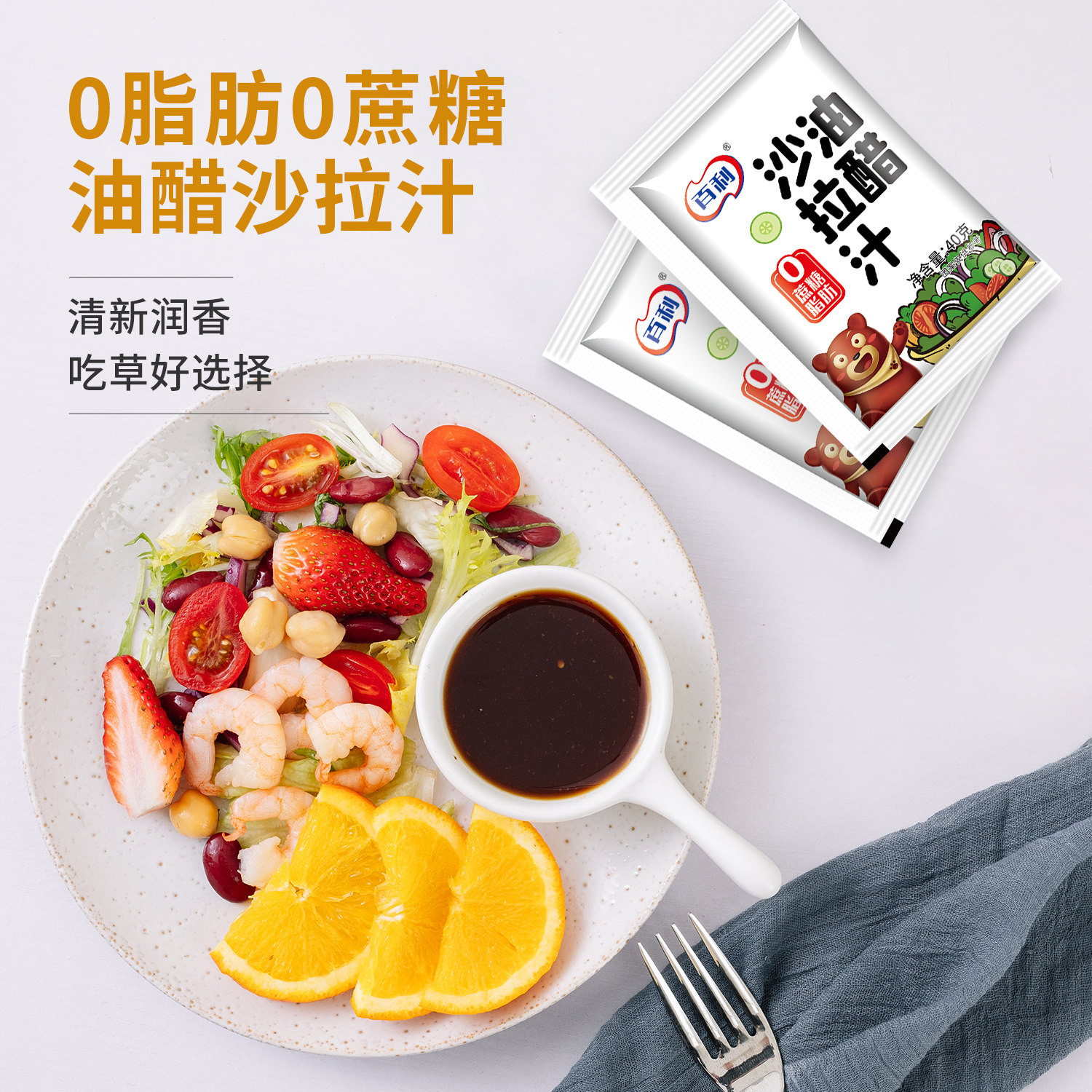 百利沙拉酱小包装 40g油醋汁0脂蔬菜沙拉酱料焙煎芝麻口味沙拉汁
