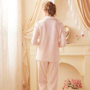 男春秋 带胸垫家居服套装 A类抗菌防螨纯棉情侣睡衣女长袖 红豆夏季