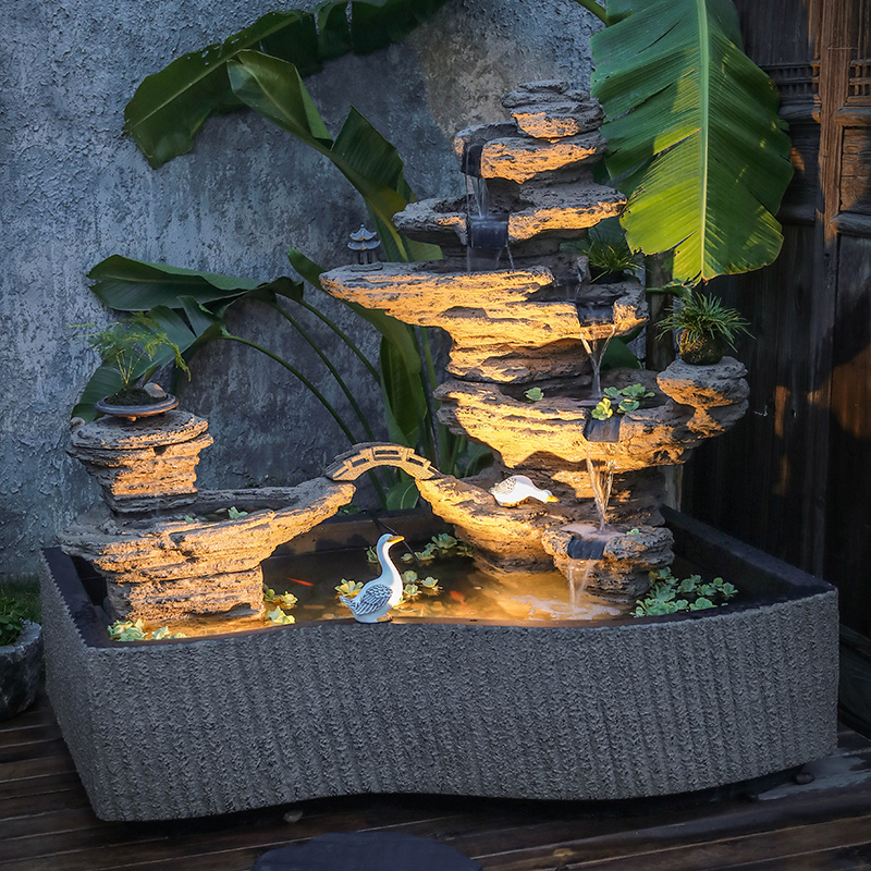 假山鱼缸鱼池喷泉盆景流水摆件配件抽水泵带灯家用循环喷雾器加湿