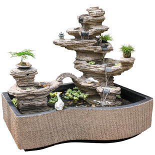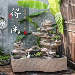 生态古法鱼缸边草缸乌龟缸熊猫钓鱼装 假山流水鱼池造景 饰摆件中式