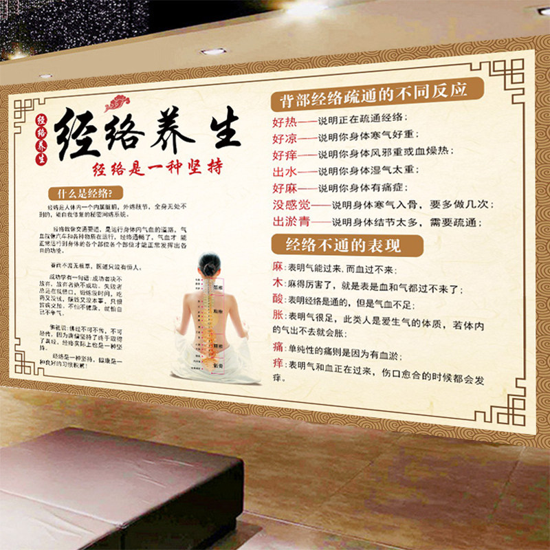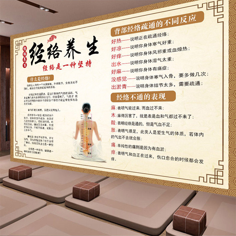 经络不通於堵壁纸中医养生馆墙纸理疗馆美容院壁画经络养生壁布