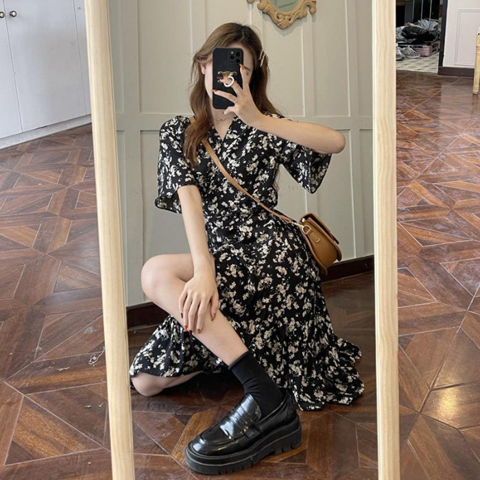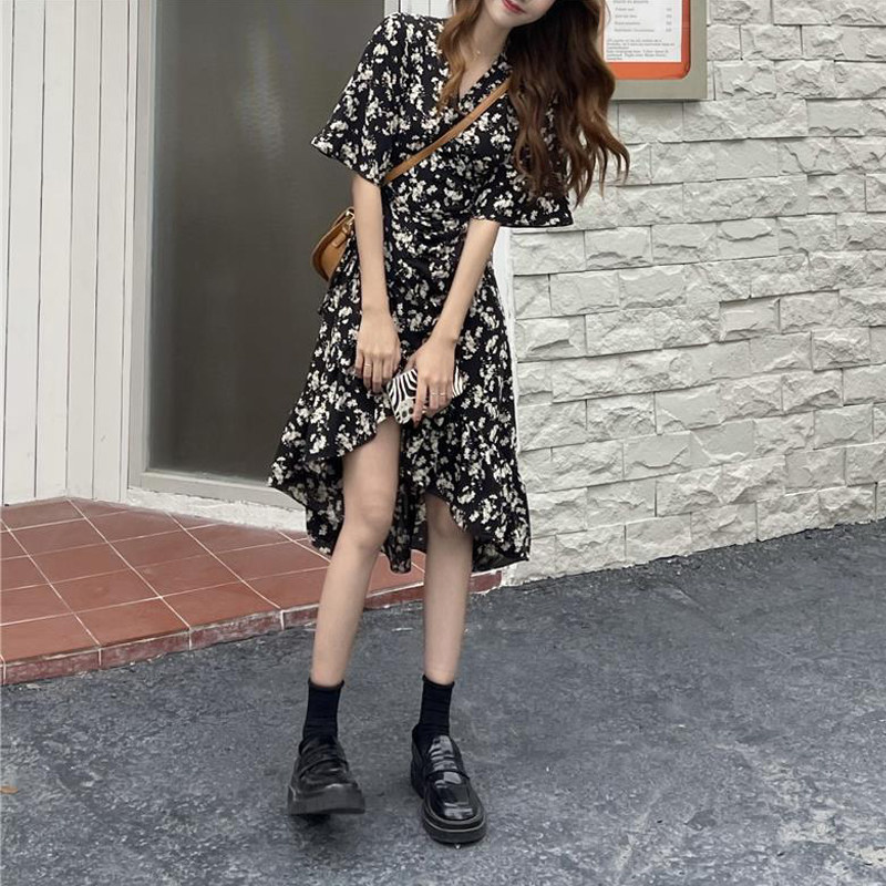 大佬碎花不规则裙修身 连衣裙显瘦女装 男用品 伪娘大码 性感雪纺变装