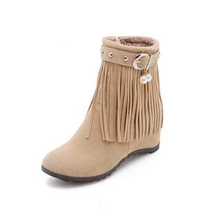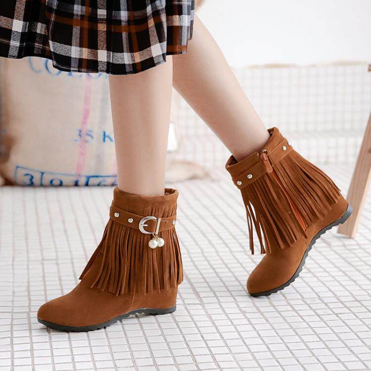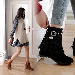 短筒流苏靴中跟网红短靴子 时尚 2021新款 甜美波西米亚内增高仙女鞋