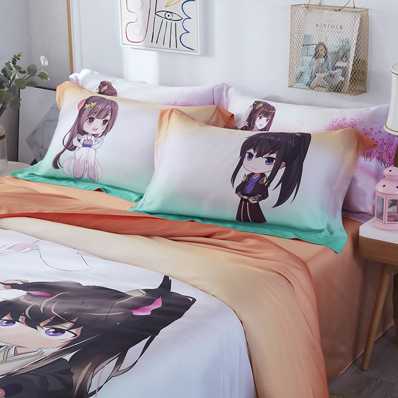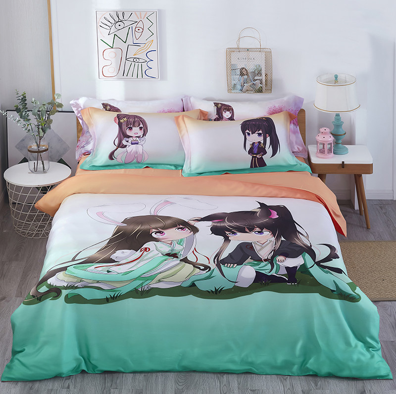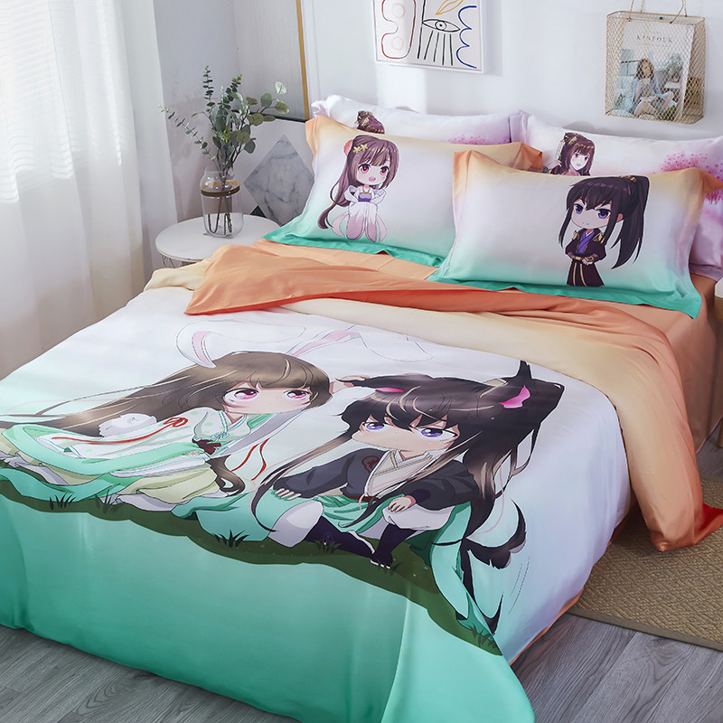 通灵妃床上用品四件套学生宿舍简约被套柔软床单枕套HT210608