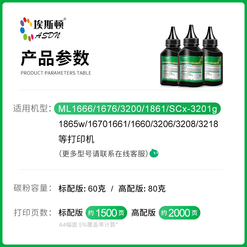 1676 3206打印机 1665 1661 D1043S碳粉ML 1666 1660 1861 3200 1670 适用三星MLT SCX 1865W 3201G墨粉1675