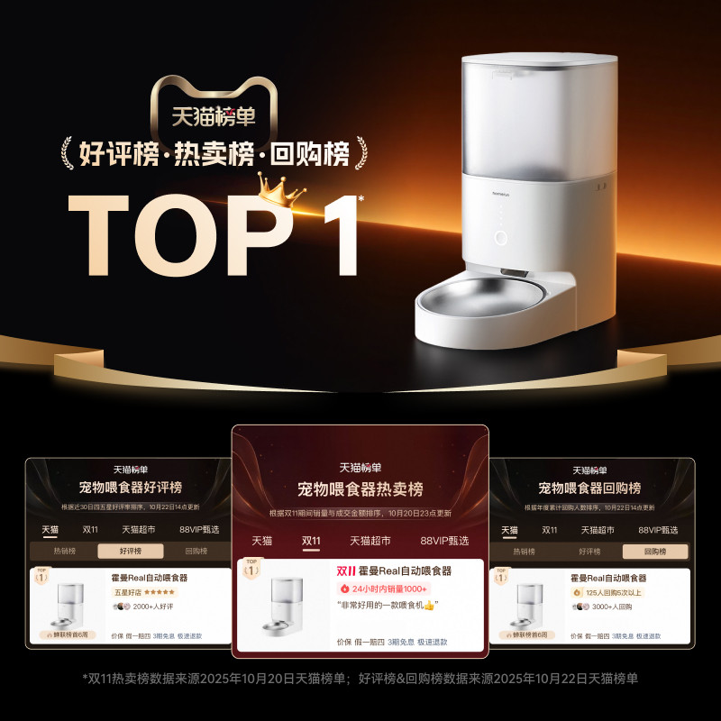 霍曼Real自动喂食器猫咪定时定量智能宠物猫粮狗粮远程控制投喂机