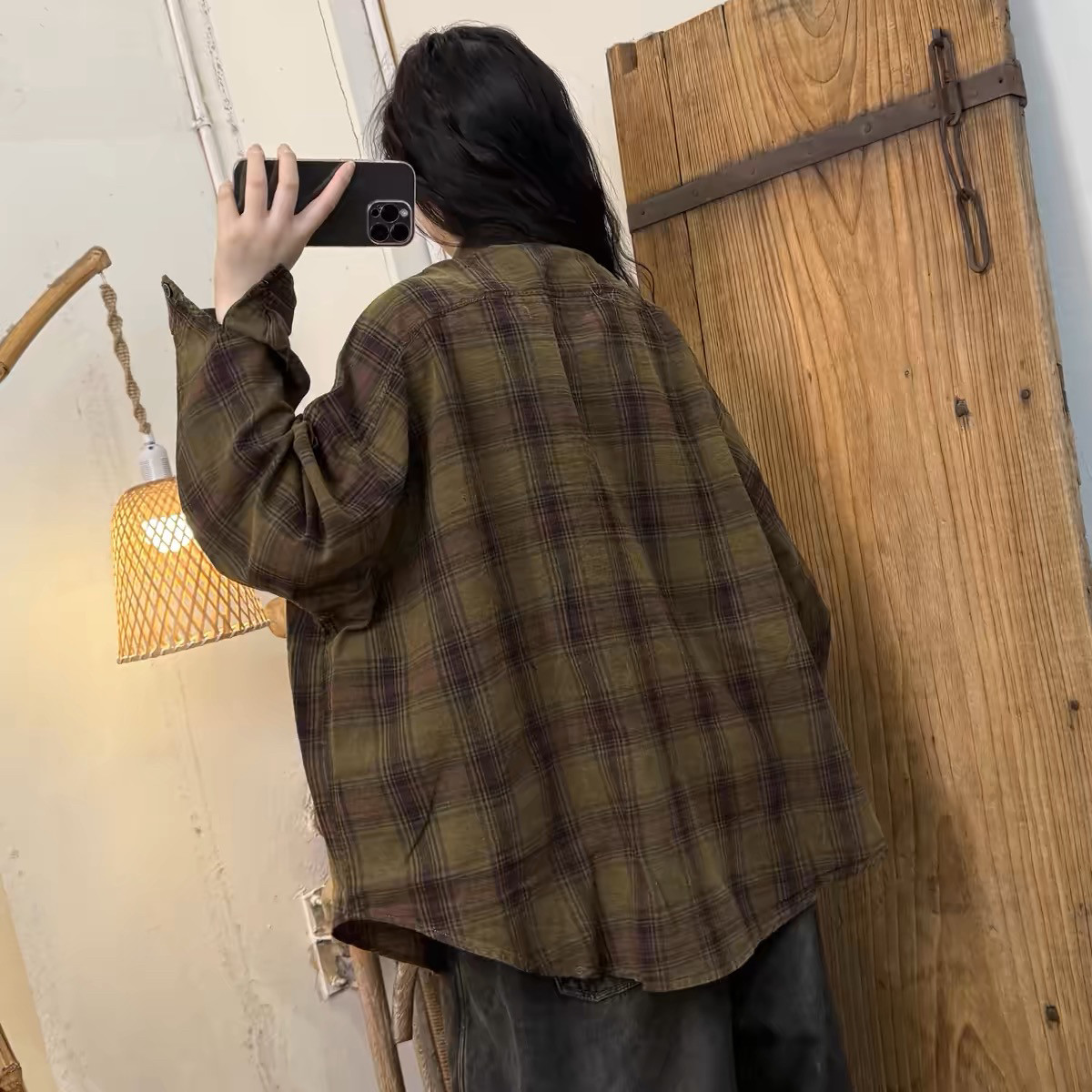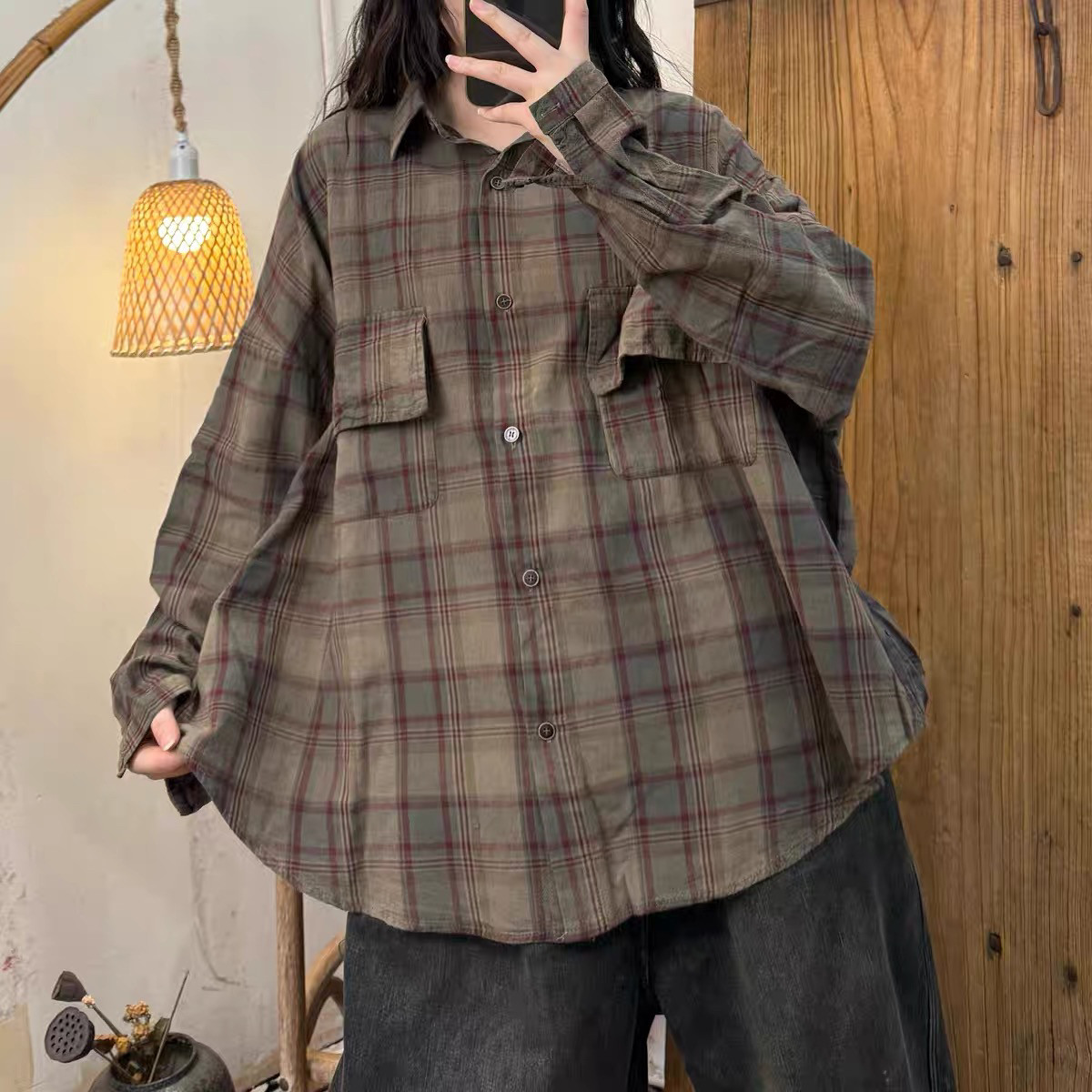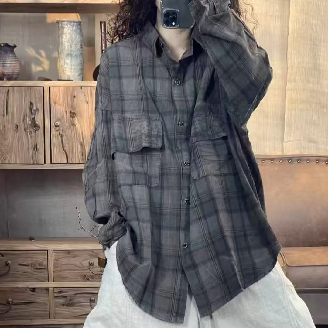 子撞色炒色做旧翻领色织棉衬衫 百搭简约风格 新款 2025春季