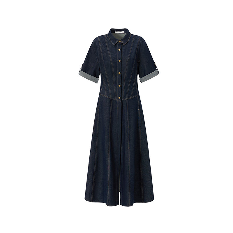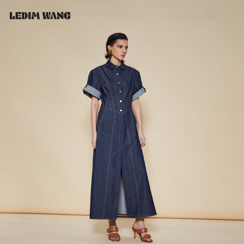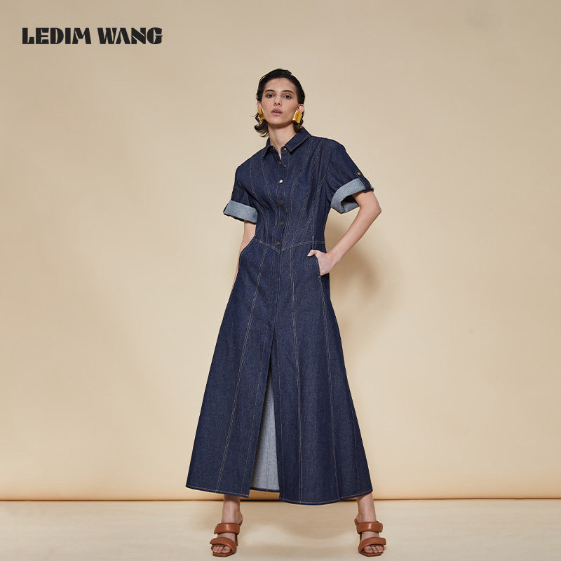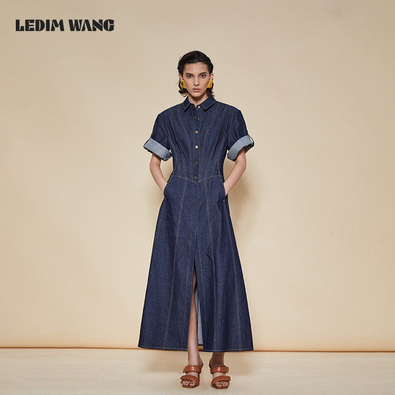 长裙 复古原色牛仔连衣裙女简约设计感气质百搭新款 LEDIM WANG美式