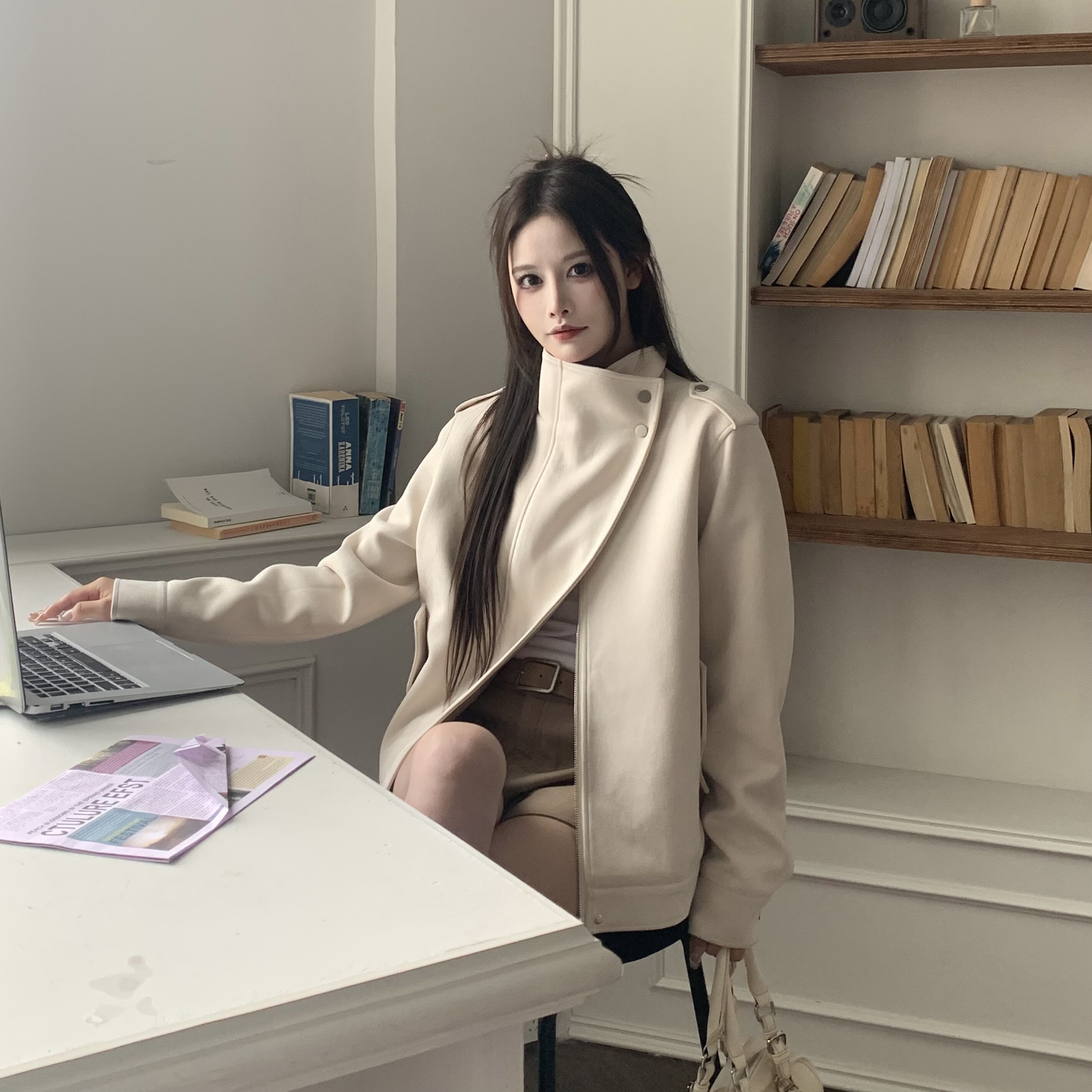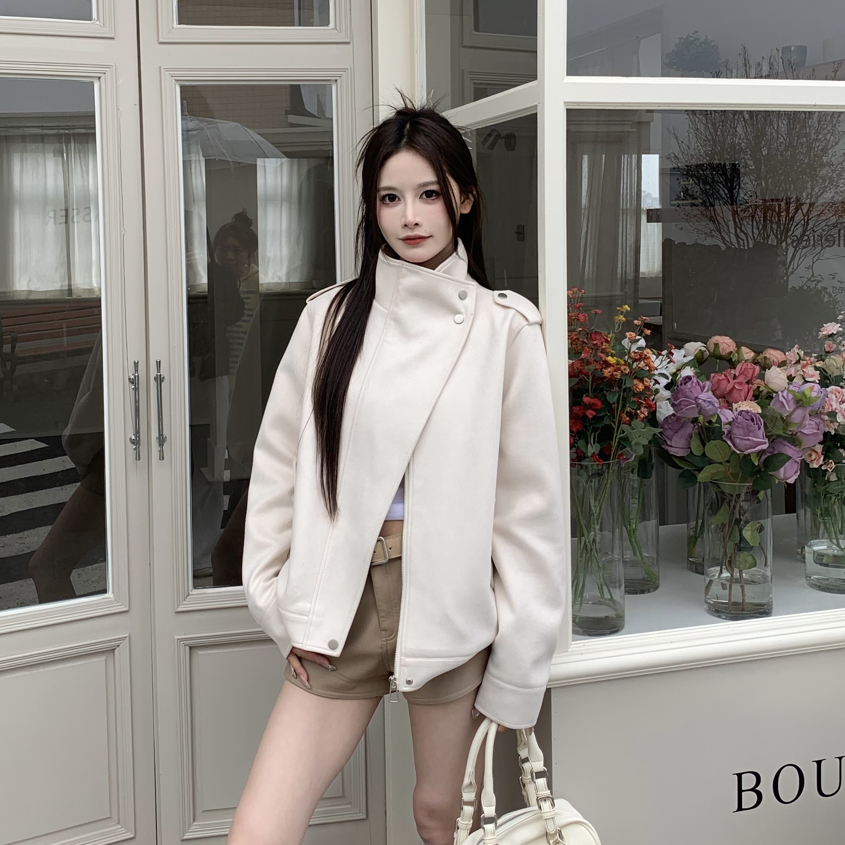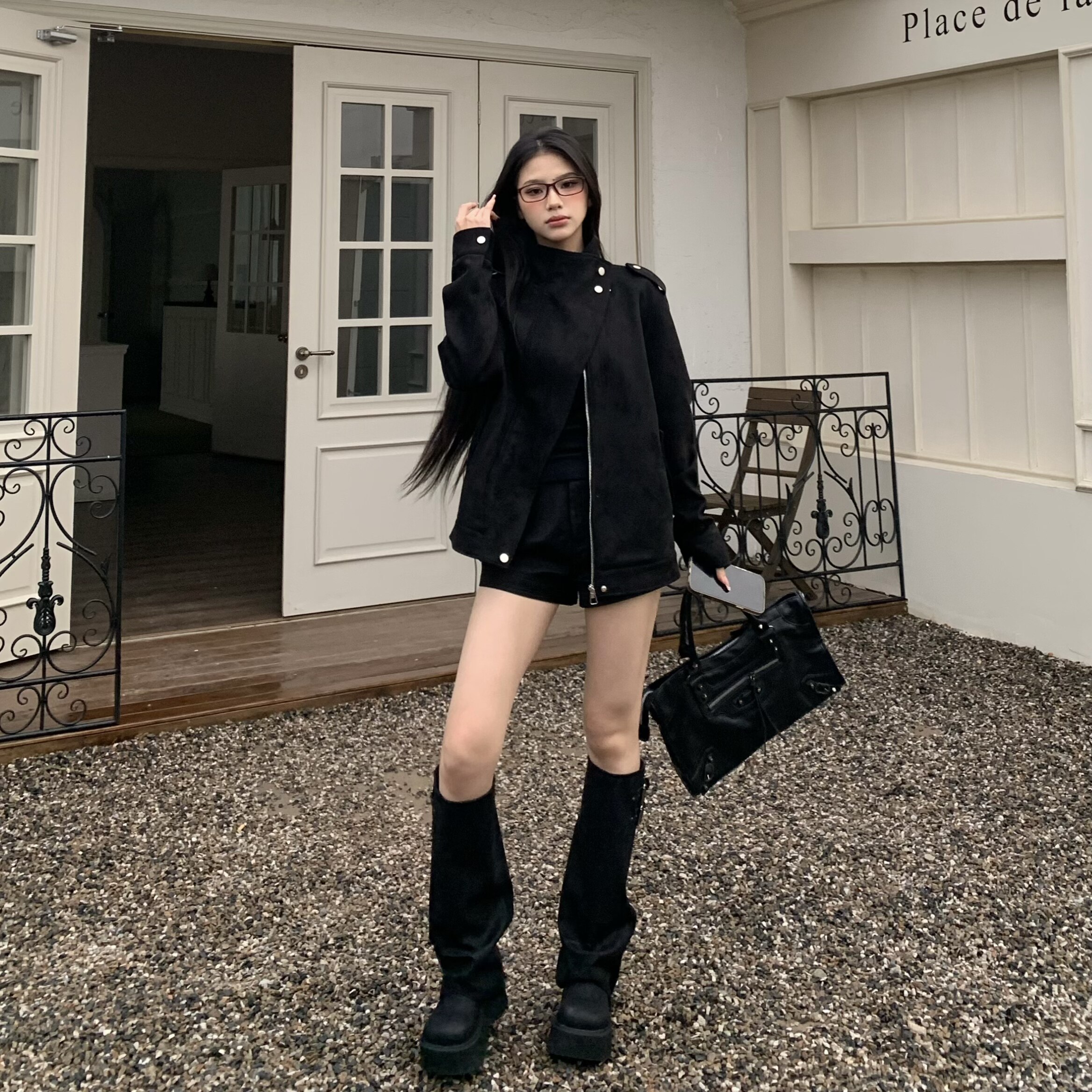 3MER哦哦三妹美式 夹克女宽松秋冬廓形机车风麂皮外套 复古气质工装