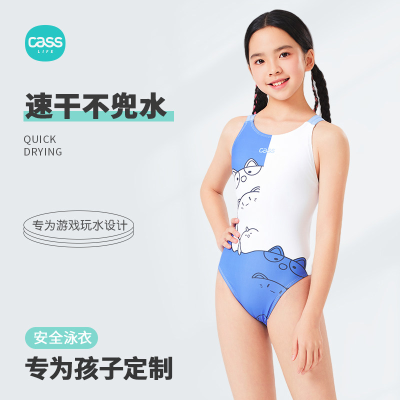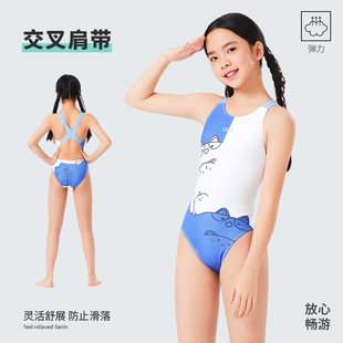 佳适儿童泳衣新款 中大童女孩专业竞速游泳衣连体三角速干女童泳装