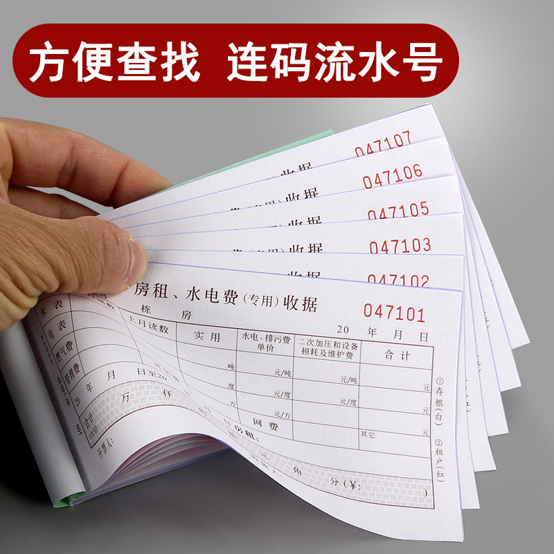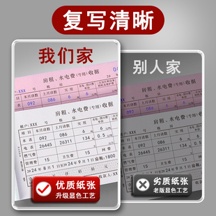 浩立信出租房收房租水电费专用记录单收租本二联单据收加厚租金收款 收据水费电费账单两联记账单凭证