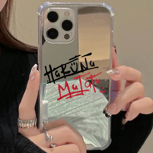 哈库呐玛塔塔适用iPhone17苹果15手机壳16ProMax荣耀100华为Mate60镜面Hakuna Matata补妆oppo严浩翔字vivo软