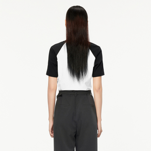 新款 t恤女夏季 印花设计感正肩上衣 复古插肩撞色短袖 飘蕾美式
