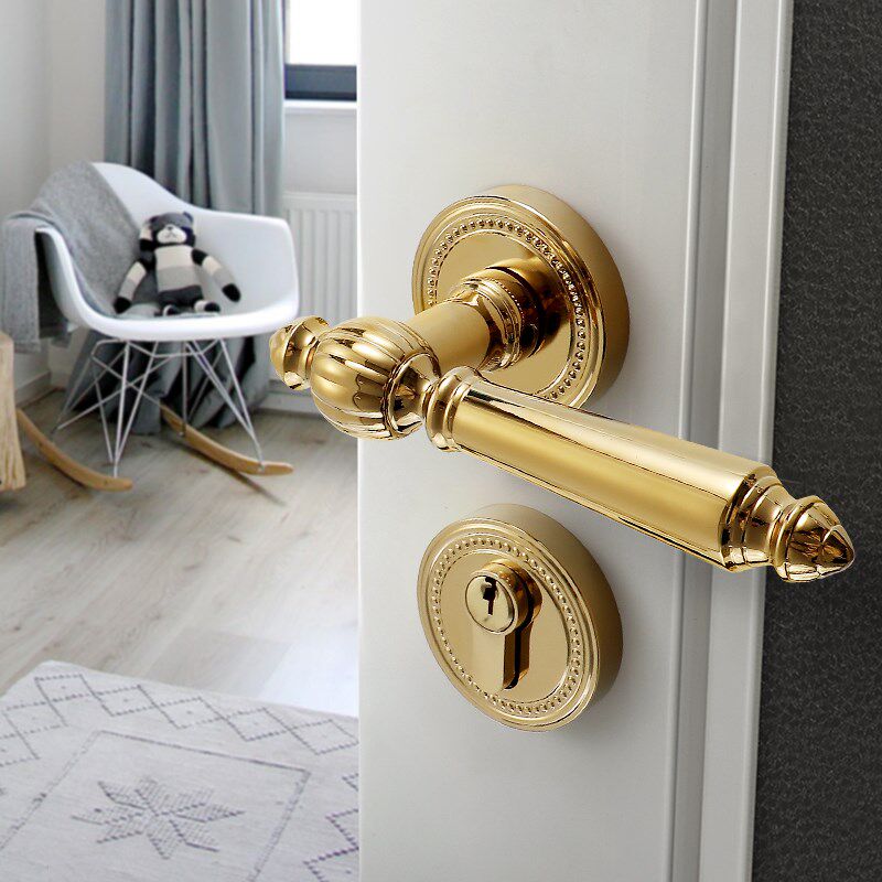 木门全铜房门锁 欧式 法式 门锁室内复古金色银色卧室门锁纯铜美式