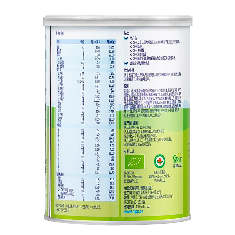 奶粉2段400g1罐6 HiPP喜宝优启有机婴儿试用装 12个月 新客专享