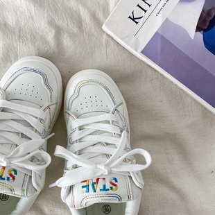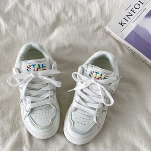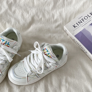 运动板鞋 喜叔小众设计感厚底小白鞋 百搭复古面包鞋 春季 女2026新款