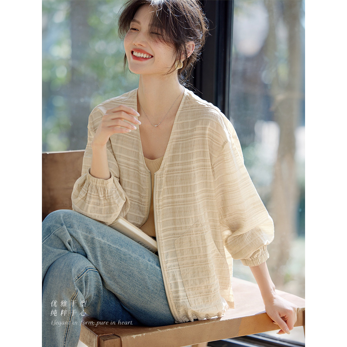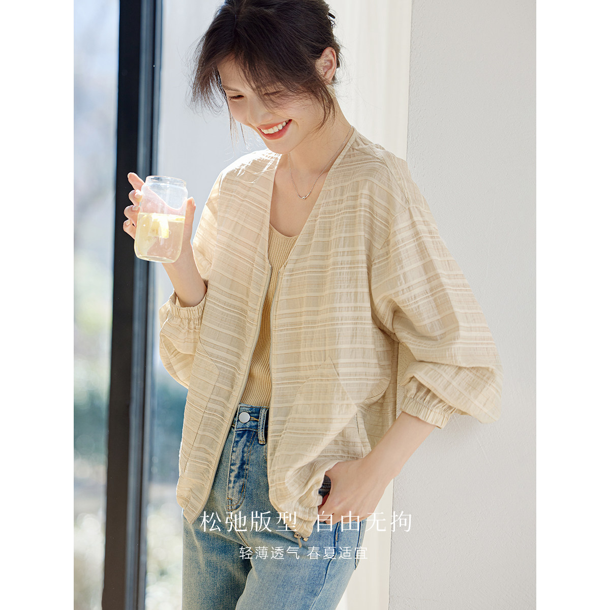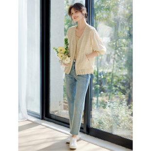 XWI欣未莱赛尔条纹肌理褶皱外套女2025夏季 透气休闲慵懒上衣 薄款