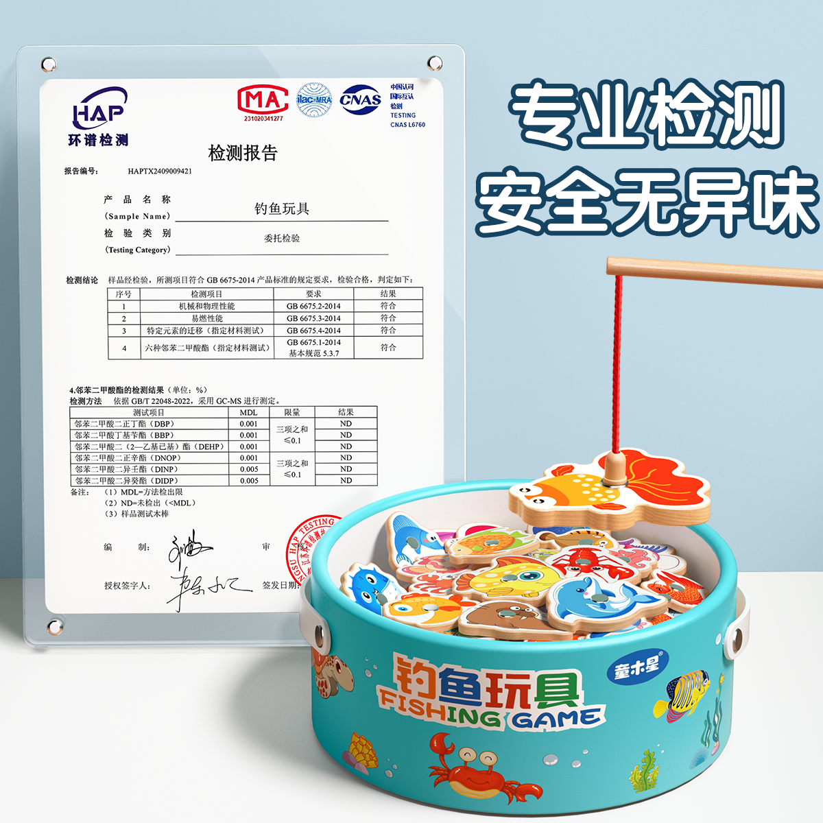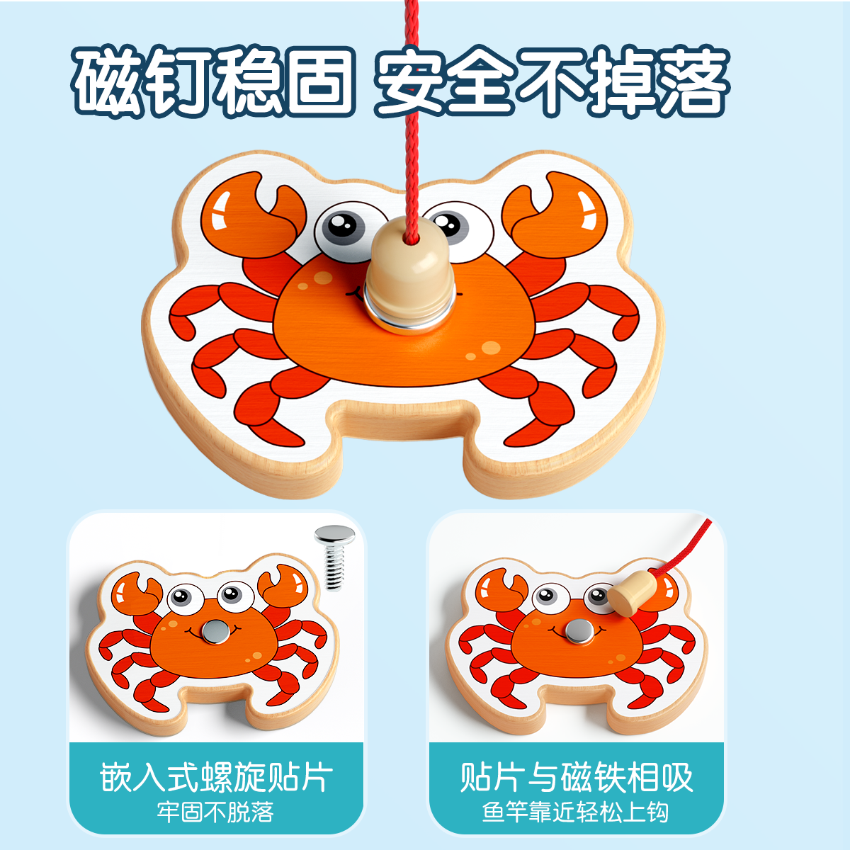 木制钓鱼玩具磁吸儿童1到3岁宝宝专注力训练蒙氏早教益智磁力积木
