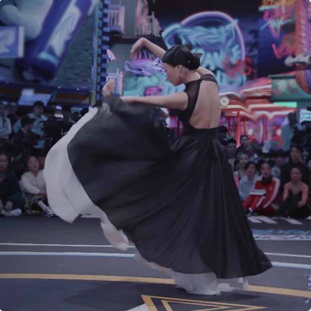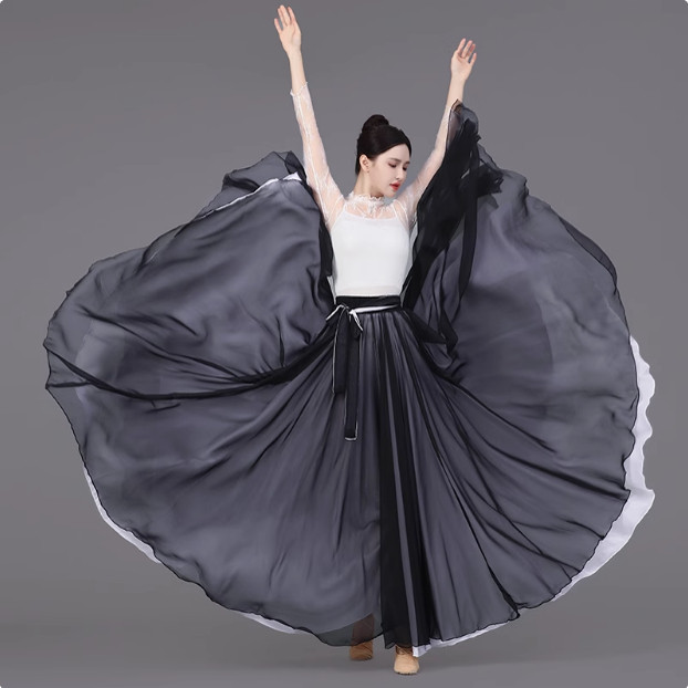 WYZ盖盖 盖盖卷珠帘中国风雪纺裙子水墨风套裙表演服 这就是街舞