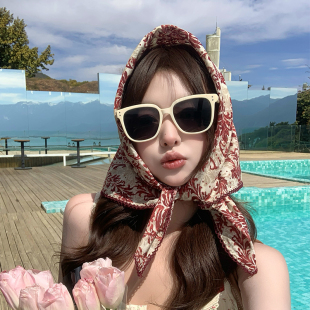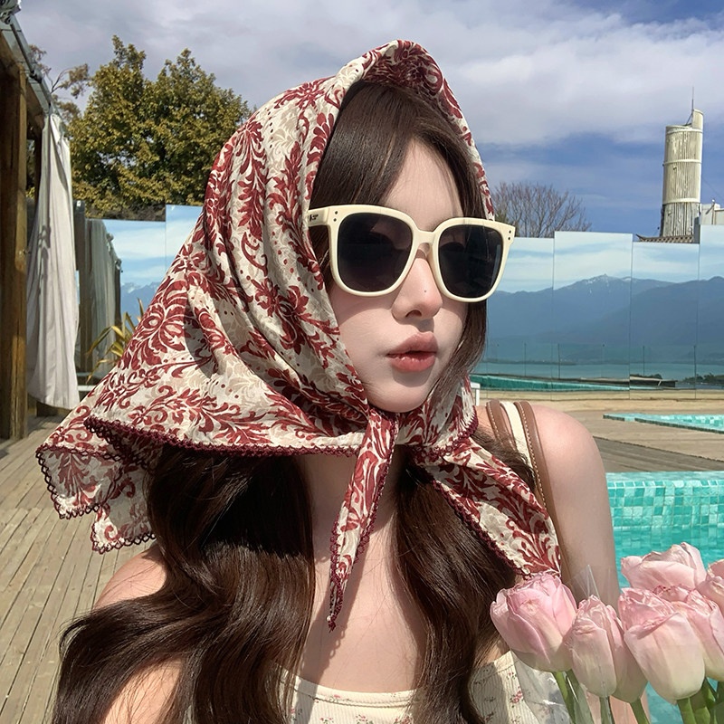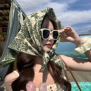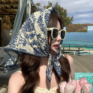 2025新款 海边拍照小方巾户外防晒头巾 复古民族风棉纱丝巾女春夏季