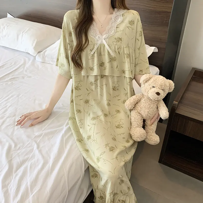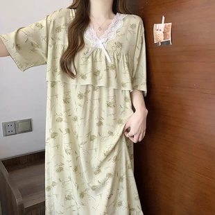 红豆居家睡衣纯棉家居服短袖 女士春秋款 清仓 睡裙特惠夏季 断码