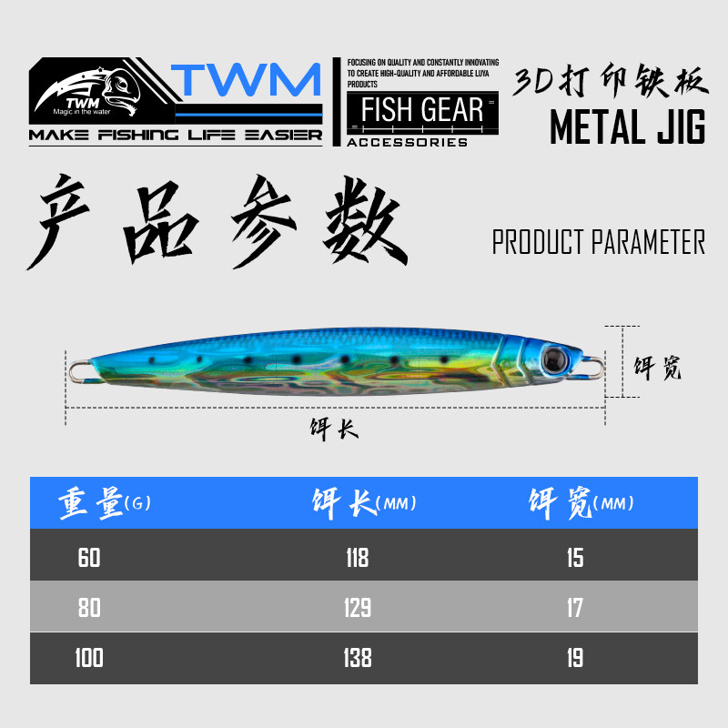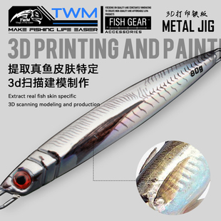 3D打印仿生铁板慢摇海钓深海飘落路亚饵远投假饵鲅鱼炫彩仿真鱼饵