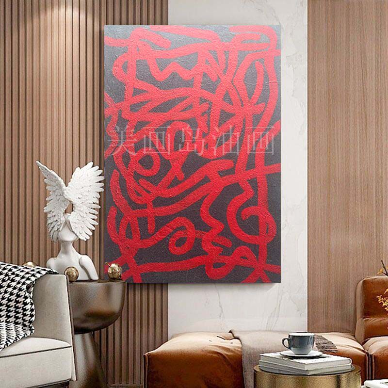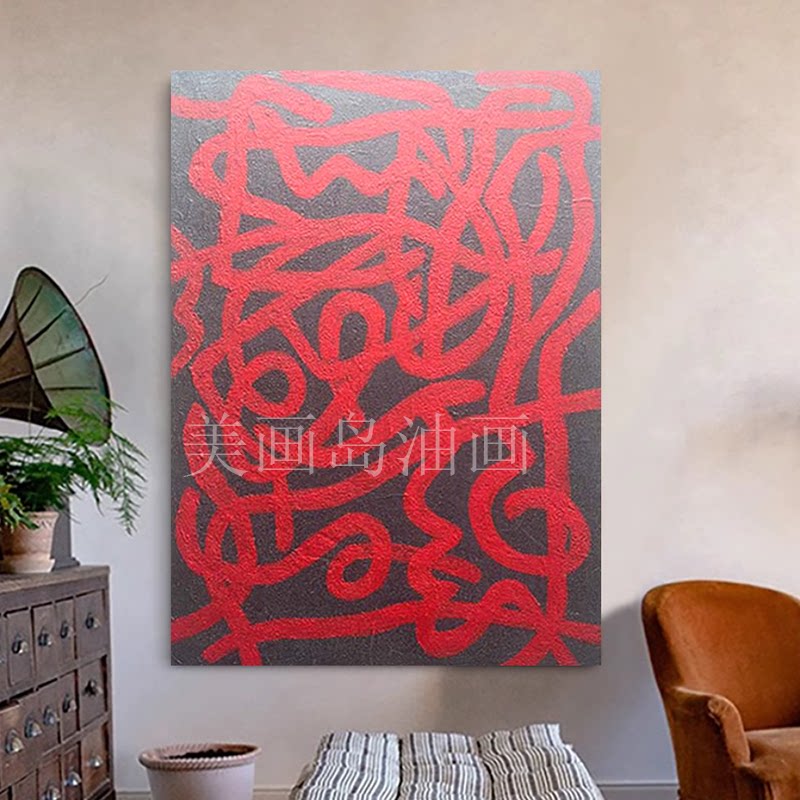 玄关肌理玄关客厅背景画 石来运转 MHD原创手绘油画红色装 饰画