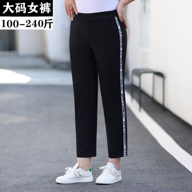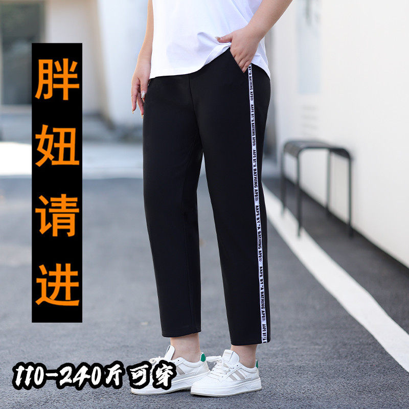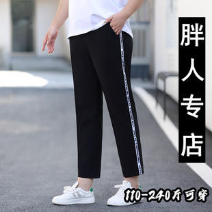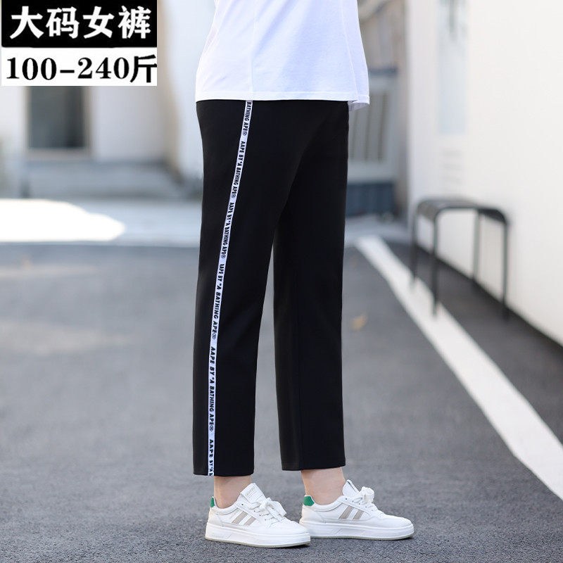 显瘦梨形身材垂感直筒裤 加绒胖mm宽松大码 子 女冬季 条纹阔腿休闲裤