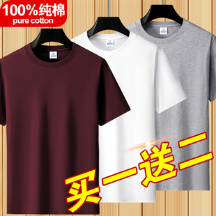 纯色打底体恤衫 夏季 圆领新款 t恤男重磅宽松半袖 100%新疆纯棉短袖