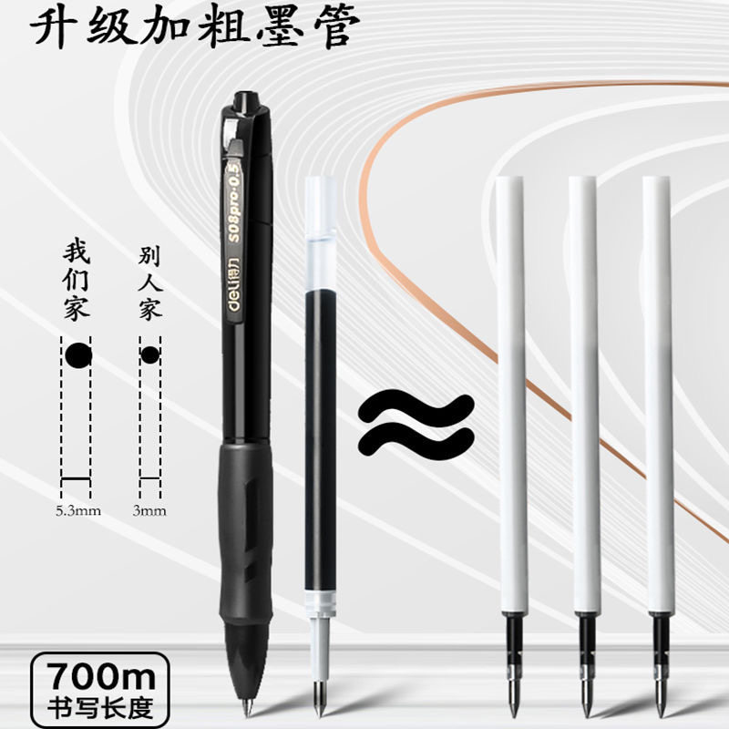 得力臻顺滑s08pro按动中性笔子弹头黑笔0.5刷题笔水笔学生考试用