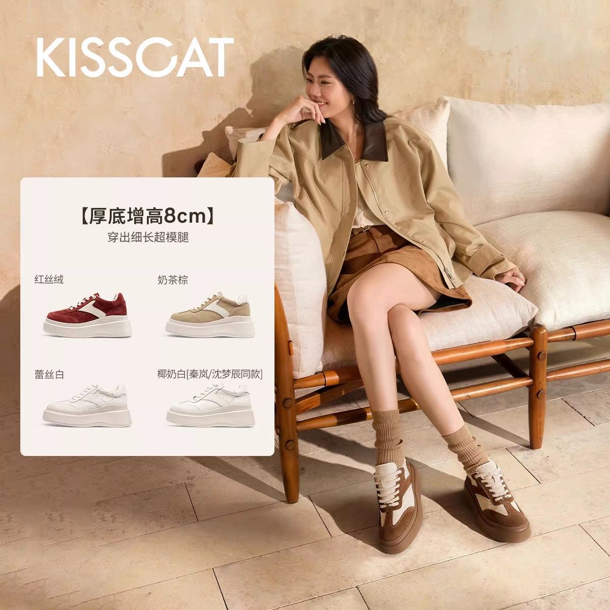 加绒休闲运动鞋 厚底德训鞋 2025秋冬新款 小白鞋 红 小个子内增高女鞋