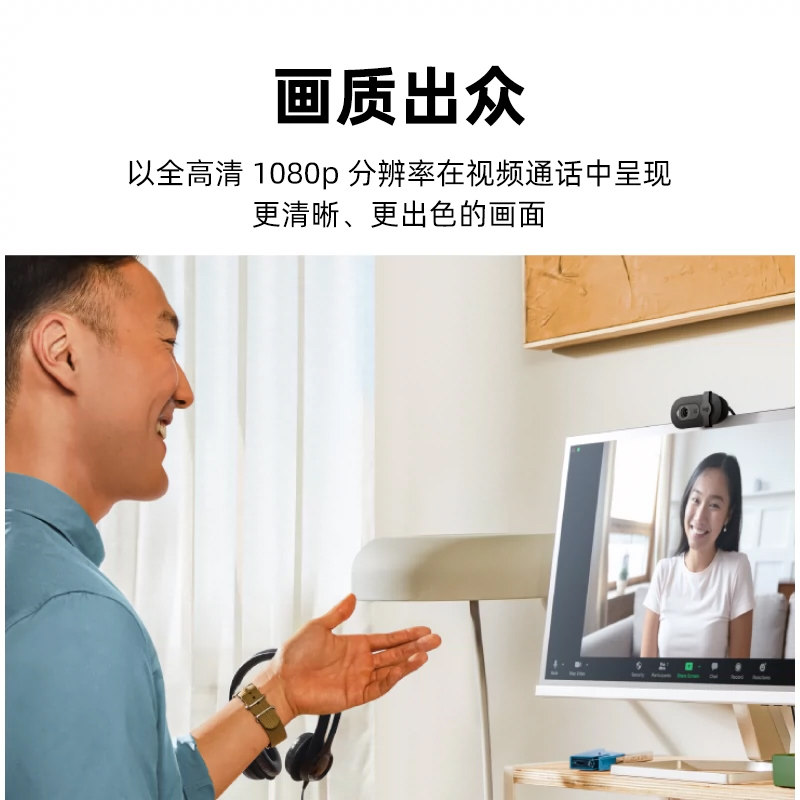 罗技Brio95高清摄像头直播笔记本电脑视频会议网课家用带麦1080p