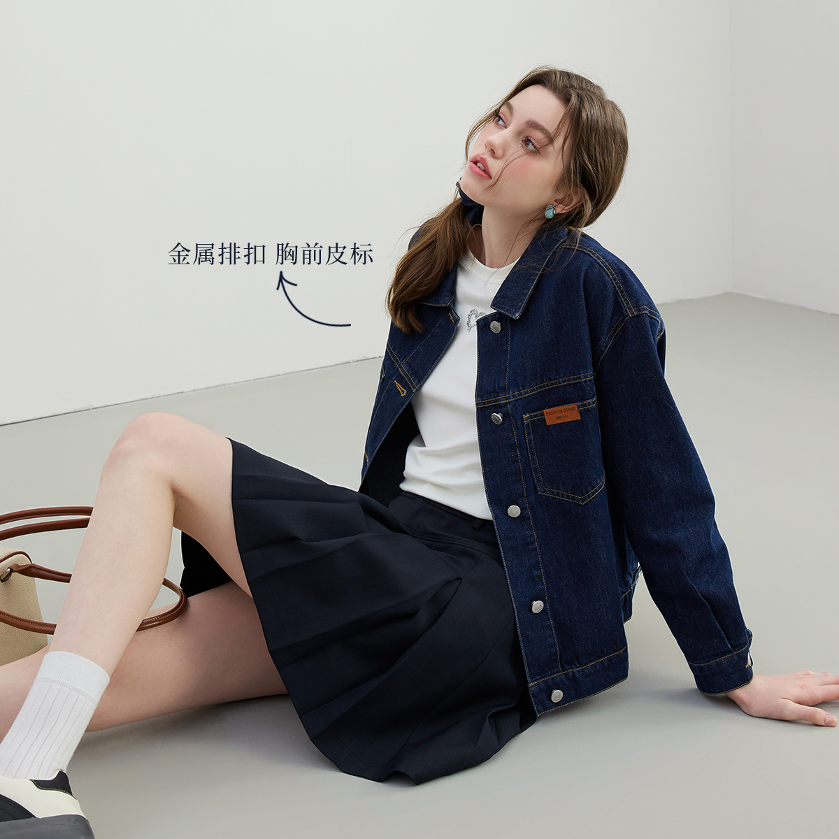 上衣女装 KBNE复古水洗牛仔外套深蓝色气质衬衣夏季 慵懒外搭长袖