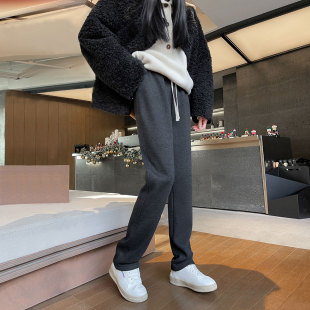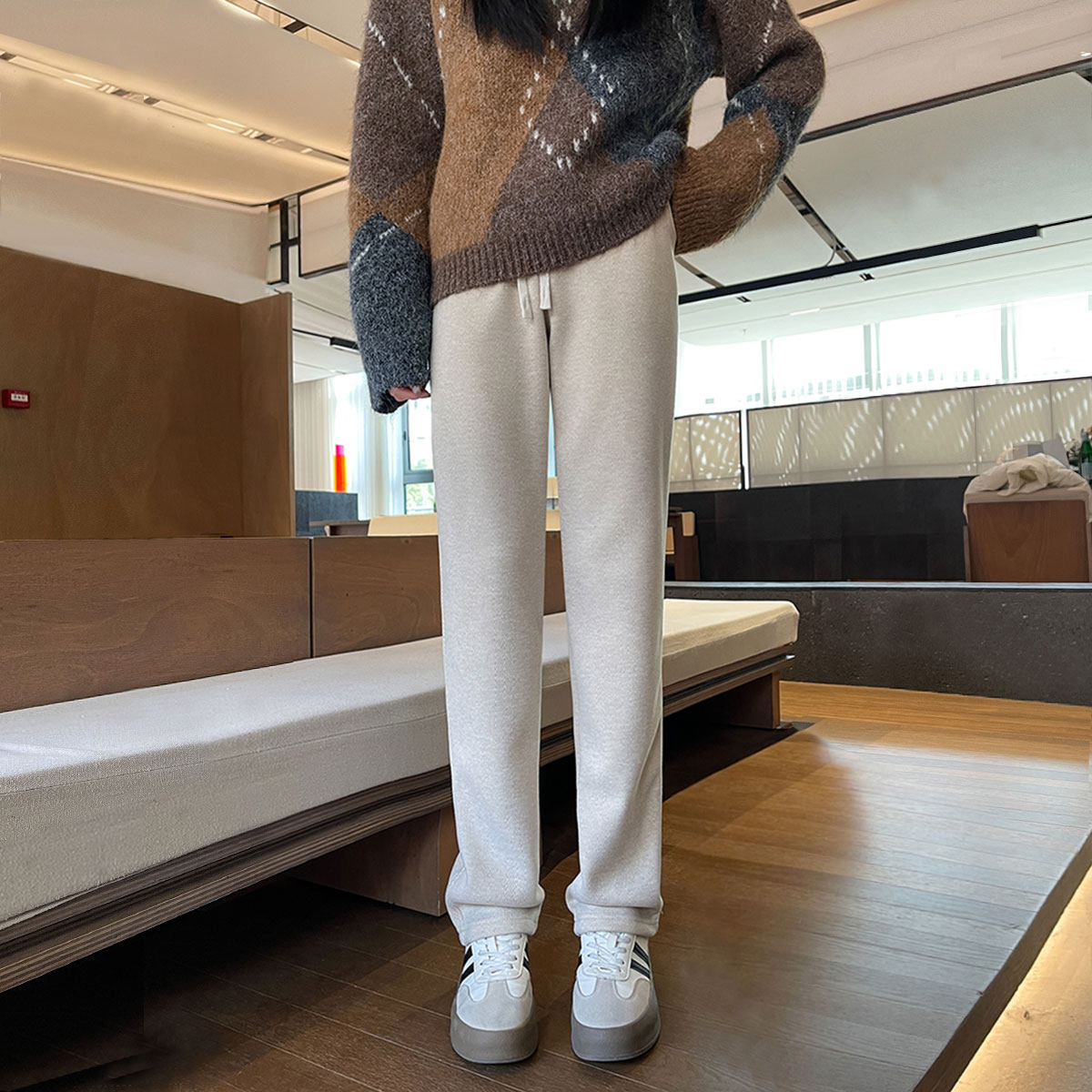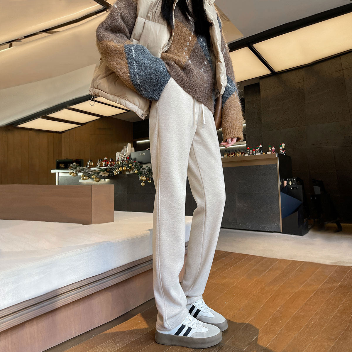 烟管运动裤 子女春秋小脚直筒窄款 高个子加长加绒毛呢裤 燕麦色大码
