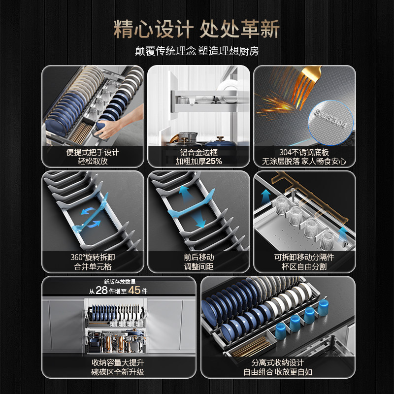 悍高厨房拉篮L4.0系列双层抽屉式 碗架304不锈钢厨房调味料收纳篮