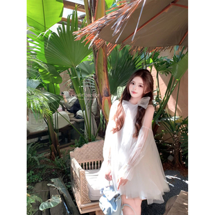 科莫湖假日 Jory 超仙蝴蝶结网纱连衣裙无袖 裙 迟伞伞 长袖