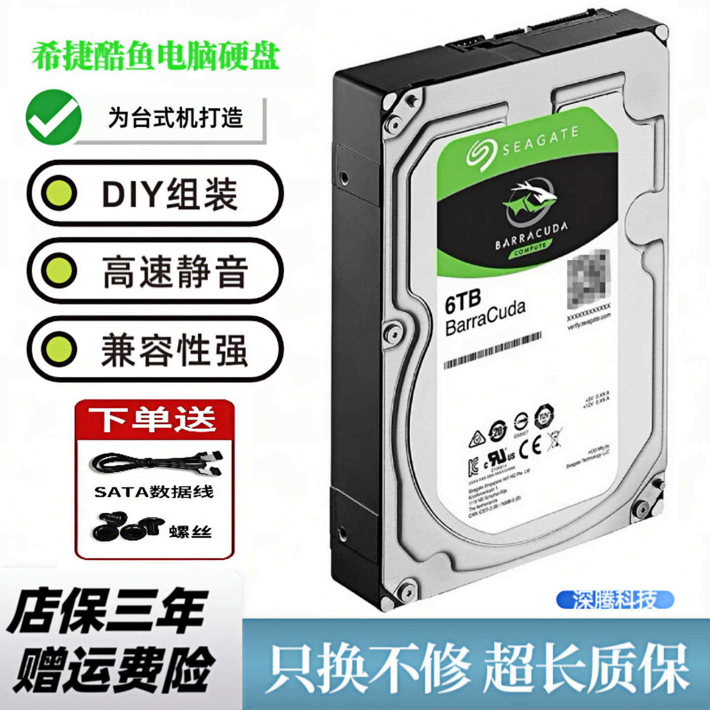 希捷酷鱼1T电脑扩容硬盘3TNAS硬盘4T监控录像6T8TB2T台式 机硬盘