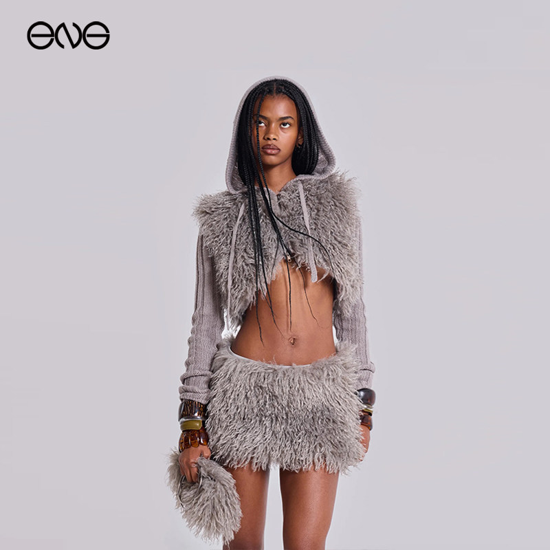 LONDON辣妹毛茸超短裙低腰包臀半身裙女 JADED 虞书欣明星同款