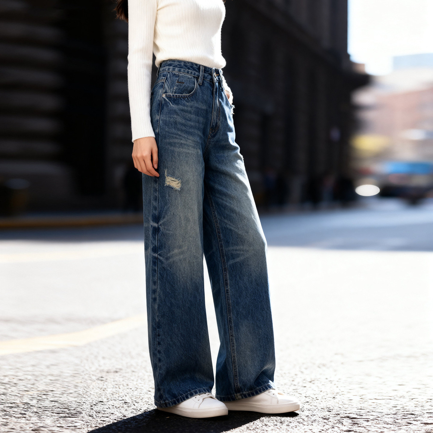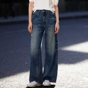 高腰显瘦气质感牛仔长裤 百家好复古百搭休闲秋冬新款 House Basic