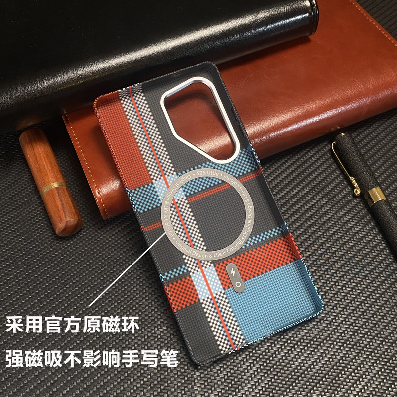 适用三星S25Ultra手机壳新款 超薄硬壳Galaxys24Ultra凯夫拉纹理s23内置磁吸s25编织壳s23Ultra商务S24保护套