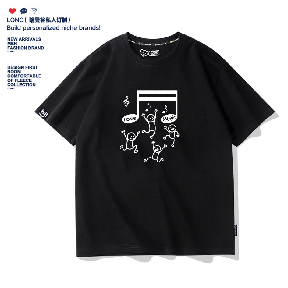 T恤男女学生青少年儿童半袖 趣味音符爱音乐love music夏纯棉短袖